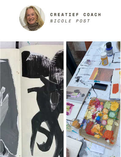 Nicole is kunstacademie geschoold als docent tekenen en schilderen en als grafisch ontwerper. Creatief bezig zijn als kunstenaar doe ik niets liever dan kunst maken en mensen inspireren. Ik geef graag intuïtieve workshops en cursussen om mijn kennis en ervaring te delen met mensen die op zoek zijn naar 'uit het hoofd, in het hart' met als doel de eigen creativiteit verder te ontwikkelen. En je eigen signature te ontdekken.